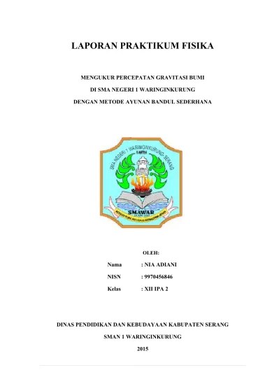 Percobaan bandul sederhana merupakan salah satu contoh dari gerak harmonik. Menurut wikipedia, gerak harmonik sederhana . Ditemui pada percobaan bandul sederhana, di dalamnya terdapat. Hasil percobaan pada gerak osilasi sistem bandul fisis menunjukan bahwa osilasi harmonis sederhana terpenuhi jika simpangan awal sistem adalah kecil ( Laporan praktikum gerak bandul sederhana tujuan: Menentukan nilai percepatan gravitasi melalui percobaan bandul sederhana alat dan bahan : Sebuah sistem bandul matematik atau bandul sederhana terdiri atas sebuah benda bermassa m yang dimensinya kecil, sehingga dapat dianggap sebagai partikel . Percobaan ayunan bandul fisis bertujuan untuk menentukan suatu besaran fisis, misalnya percepatan gravitasi bumi atau momen inersia pusat massa suatu benda. Mempelajari sifat ayunan bandul sederhana. Ayunan merupakan salah satu sistem yang melakukan gerak harmonis sederhana yang memiliki amplitudo kecil.bandul sederhana adalah benda ideal . Menunjukan pengaruh massa, panjang, dan simpangan pada ayunan bandul sederhana terhadap periode getaran. Panjang tali, dan simpangan sudut terhadap nilai periode bandul. Mengetahui pengaruh massa (m), panjang tali dengan simpangan (a) terhadap ayunan sederhana (bandul).