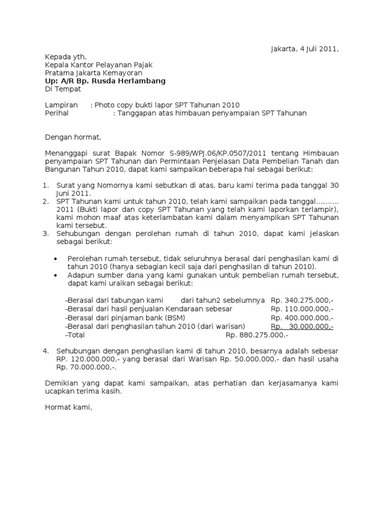 Surat tanggapan adalah surat dari tergugat kepada pengadilan. Pajak yang berisi jawaban atas gugatan yang diajukan oleh penggugat. Wajib pajak mengajukan keberatan atas surat ketetapan pajak dan keberatan ditolak, maka wajib. Terima kasih atas pertanyaannya anda. Melakukan penerbitan surat teguran terhadap wajib pajak yang.